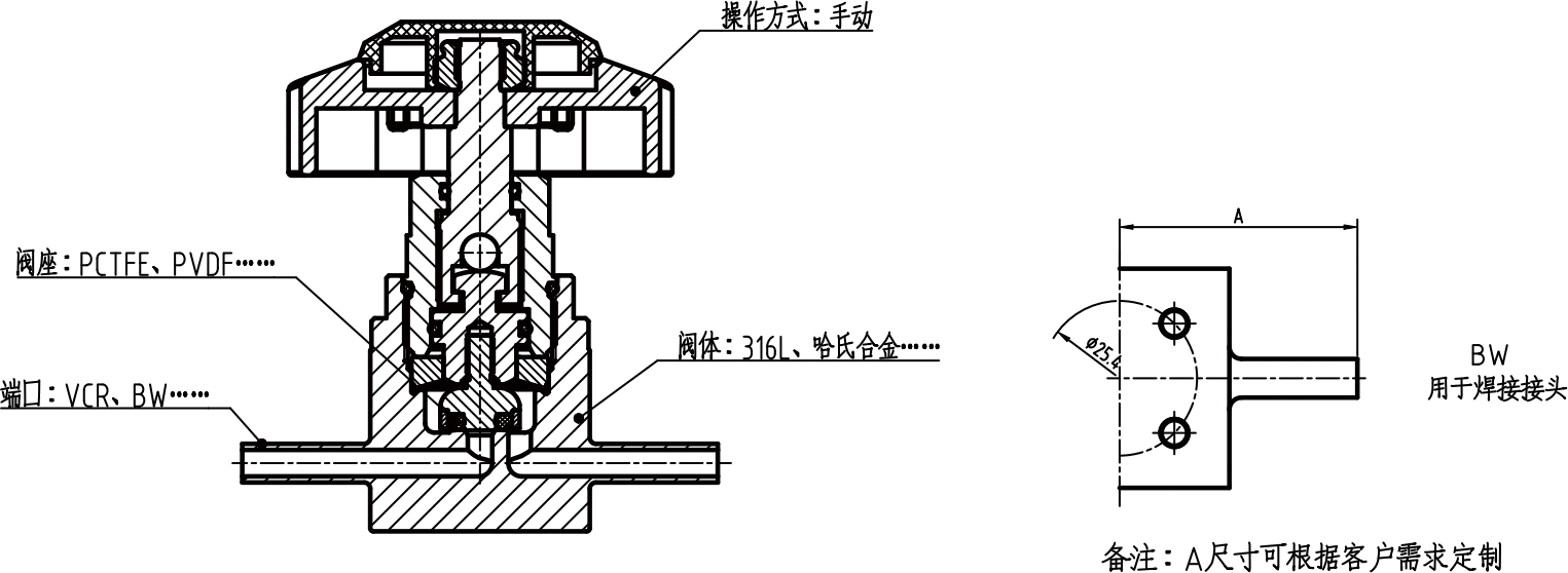 軟閥座和金屬閥座相結合,具有低滲透率焊接隔膜提供高密封性完整性